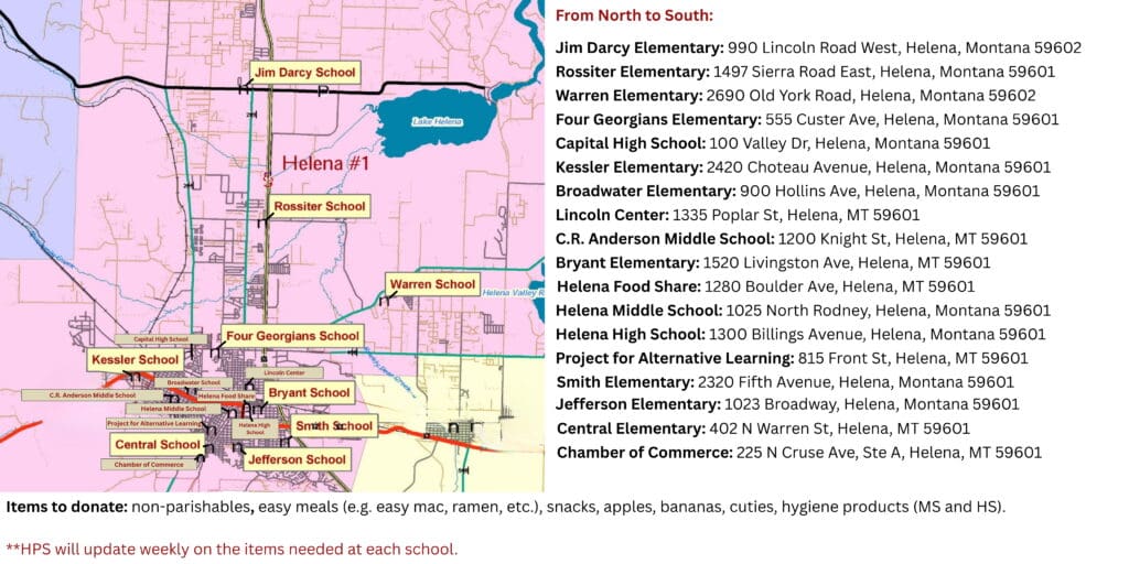 In the last few weeks, we’ve had quite a few conversations with community members on how they can help and what they can donate to schools – we appreciate the care and kindness we have seen flow into schools. In Helena Public Schools’ efforts to provide support and assistance to our families affected by the government shutdown in a community connective way, we have established initiatives that take a few different forms:
